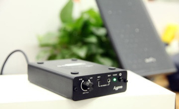 功放盒子,采用金屬機(jī)身,配合黑色噴砂陽(yáng)極氧化工藝,品質(zhì)感十足,前面有電源鍵、指示燈、Audio in接口(音頻線和USB數(shù)據(jù)線均可接入)、音量旋鈕;后面是電源接口和Audio輸出接口;底部四個(gè)角各有1個(gè)防滑硅膠墊。